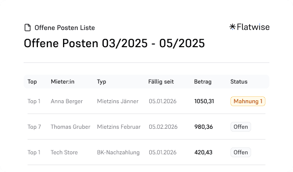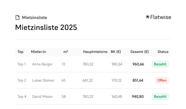 Flatwise richtet sich an private als auch gewerbliche Vermieter, die einzelne Wohnungen oder ganze Gebäude verwalten. Egal, ob du nur eine Wohnung vermietest oder mehrere Einheiten verwaltest – Flatwise hilft dir, Zeit und Geld zu sparen sowie deine Prozesse zu optimieren.