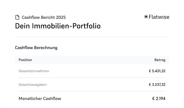 Alle wichtigen Kennzahlen deiner Immobilien. Klar strukturiert. Sofort verfügbar