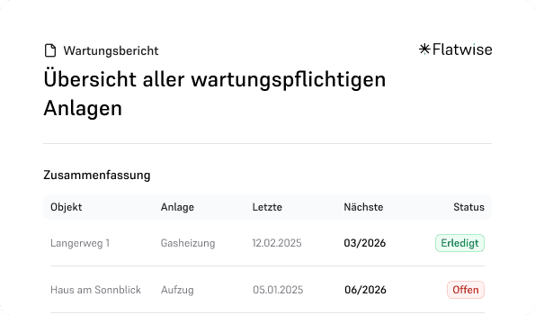 Flatwise generiert Berichte als PDF und legt sie in der Flatwise Dokumenten-Cloud ab.